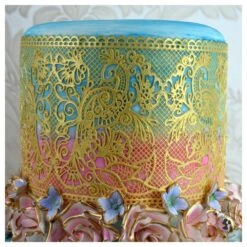 Fantasia is an exquisite 3D ‘dancing’ peacock lace design with interlinking swirls, mounted on a mesh like base. The Fantasia mat is the ideal depth for extra deep ~ 5 inch cakes.