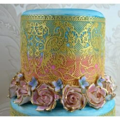Cake Lace can be coloured using powder or gel pastes to achieve pastel colours. Airbrush or spray to achieve dark colours.