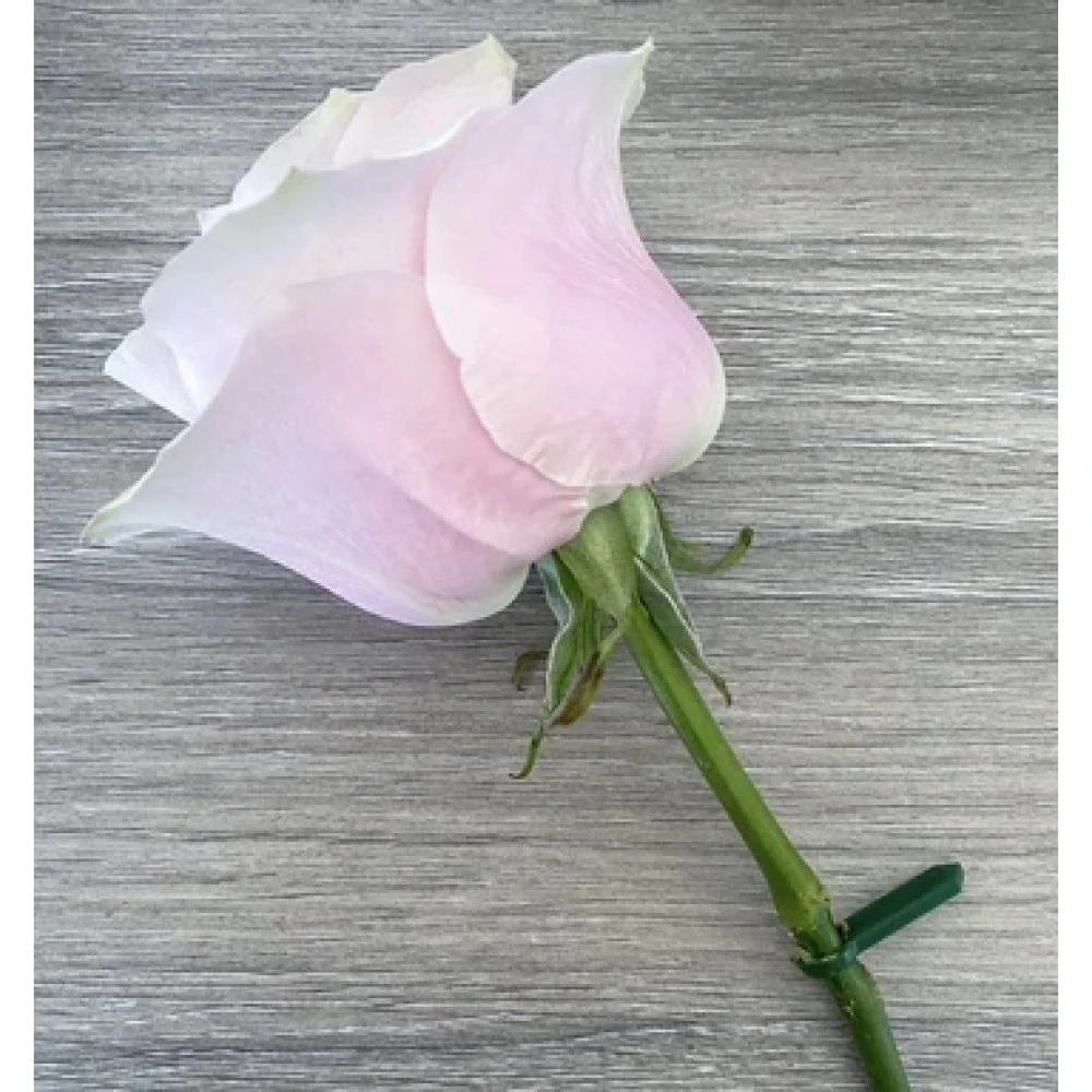 Simply insert the cake pin into the side of your cake tier, and carefully thread/slot your flower stems through the loop.