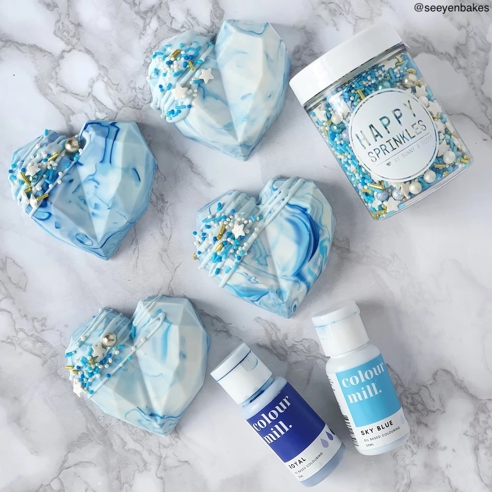 Unlike your average gel colours, Colour Mill loves the fats and oils found in your baking, and uses it to disperse the special formula colouring. This results in stunningly vibrant, consistent shades that will not fade. It works especially great in buttercream, swiss meringue, chocolate, cake batter, ganache and sugarpastes. It also works in flower pastes, gumpastes, modelling pastes, royal icing, marzipan, cake mixes, pastry, frostings, isomalt, piping gel, cake lace mixes and more.