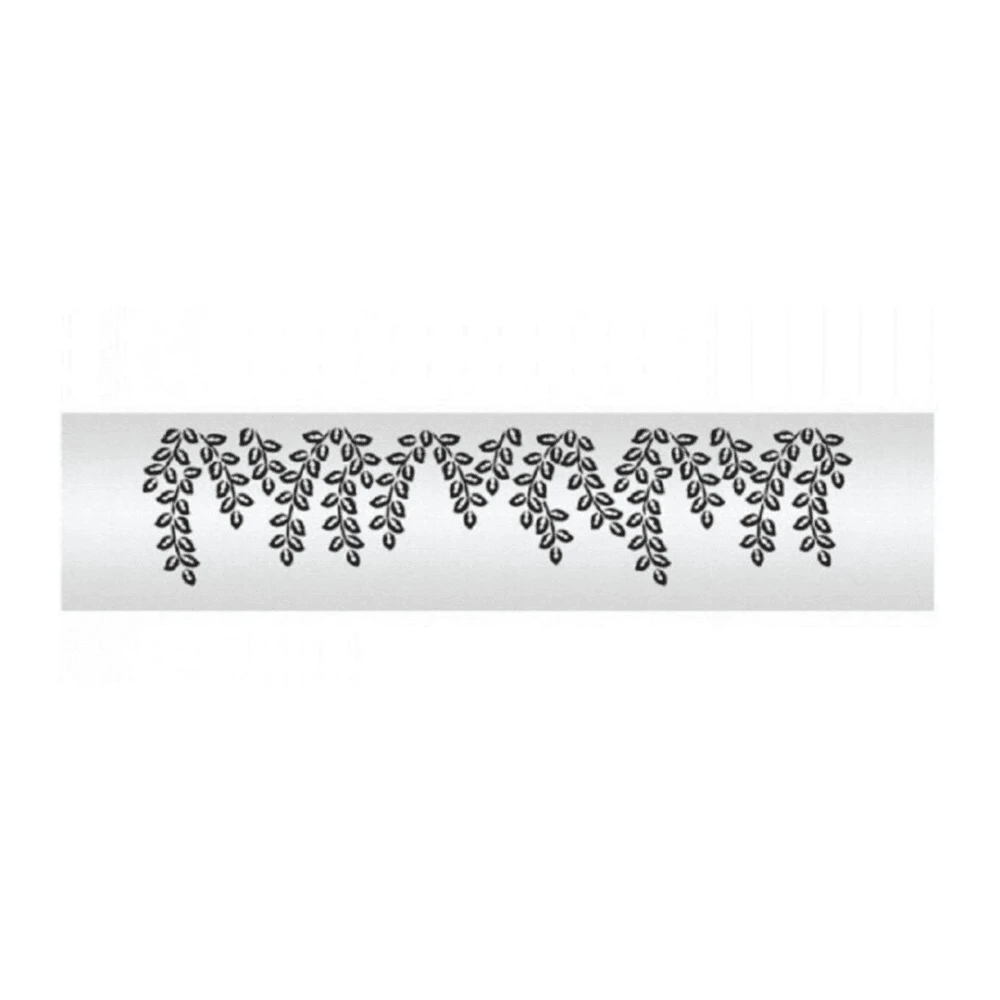 This Lace Vine Professional cake stencil set #11 is a romantic top or bottom border design with delicate foliage sprigs.