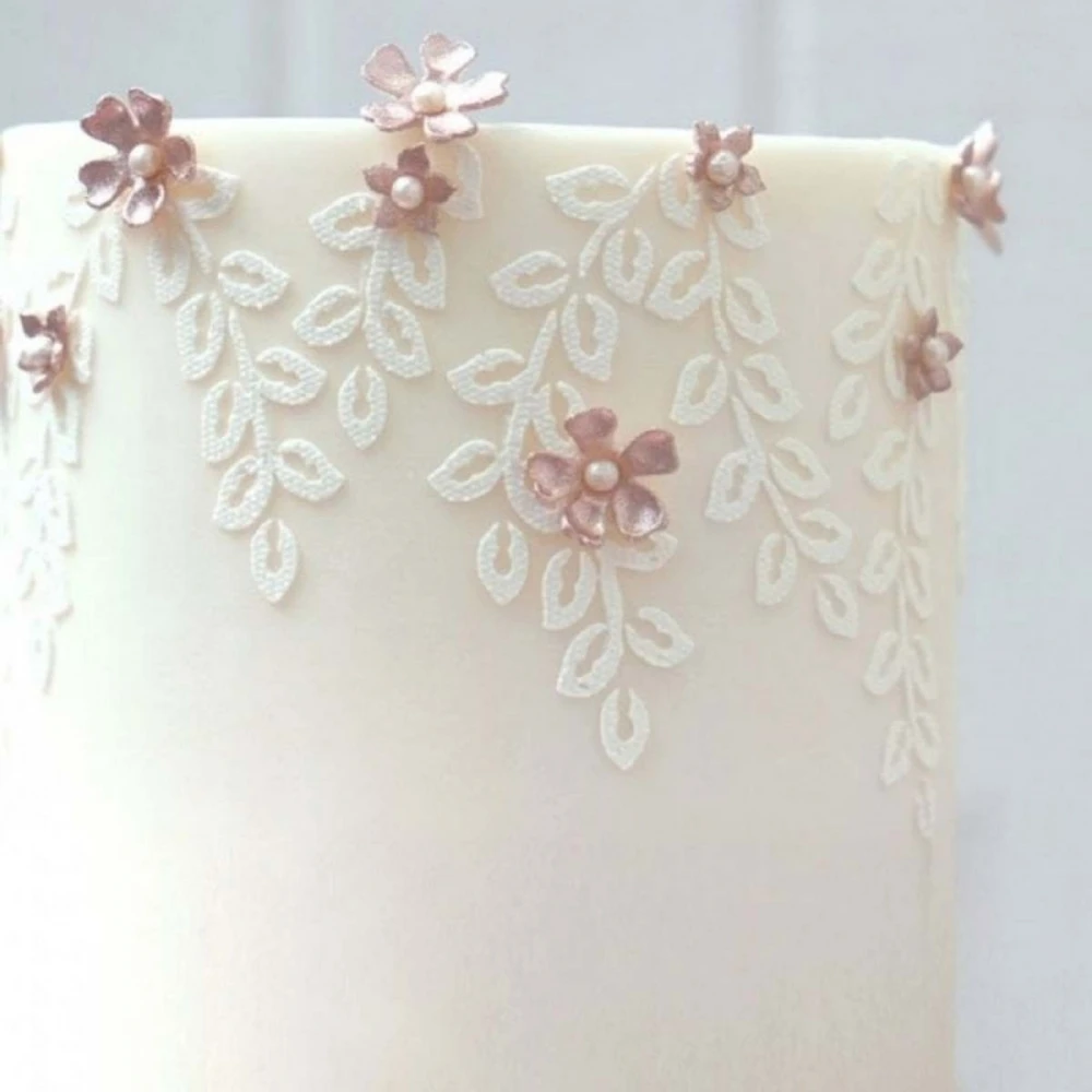 A Lace Vine Professional cake stencil by Evil Cake Genius collaborating with Suzanne Esper.