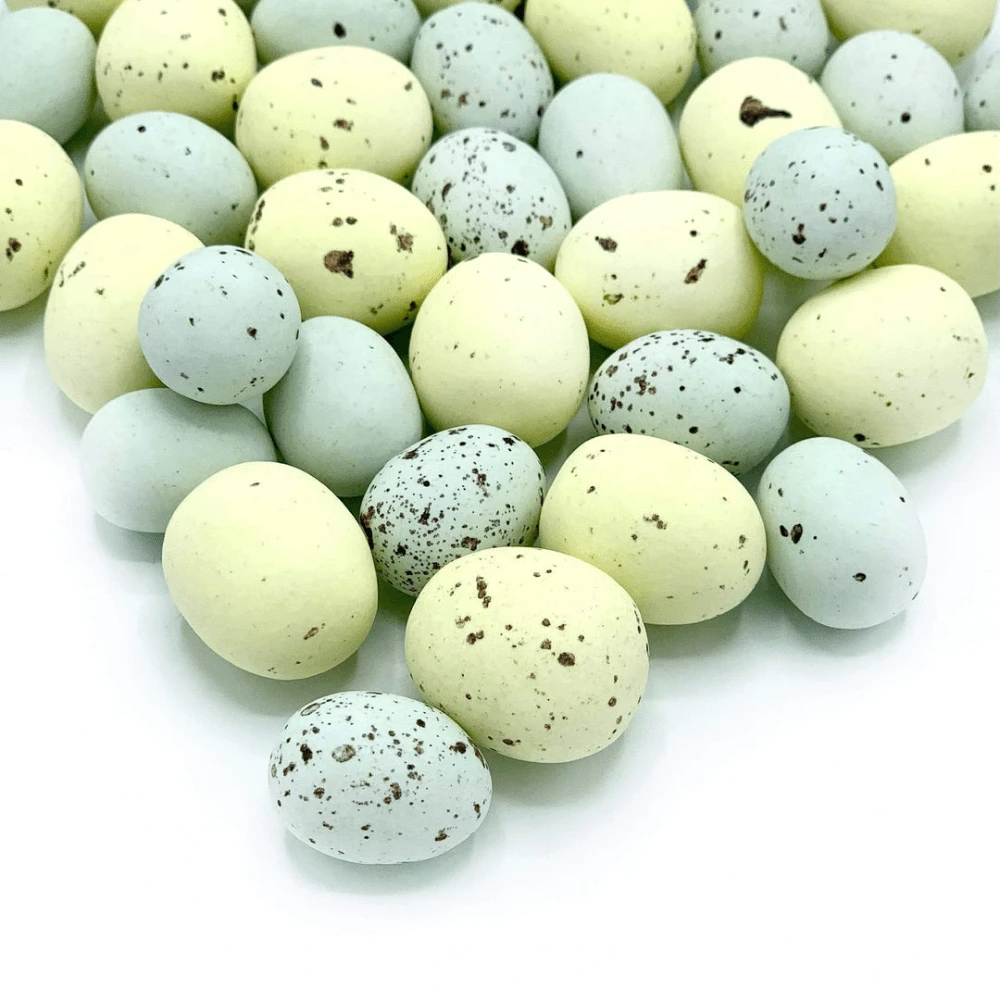 Featuring a mixture of soft yellow and blue speckled coatings, these pastel tones pair beautifully with any Easter design.