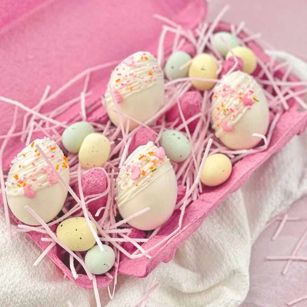 These truffle eggs are perfect for creating Easter nest decorations on cakes, traybakes, cupcakes, chocolate cornflake nests, or even just a sneaky nibble in between decorating. We won’t tell!
