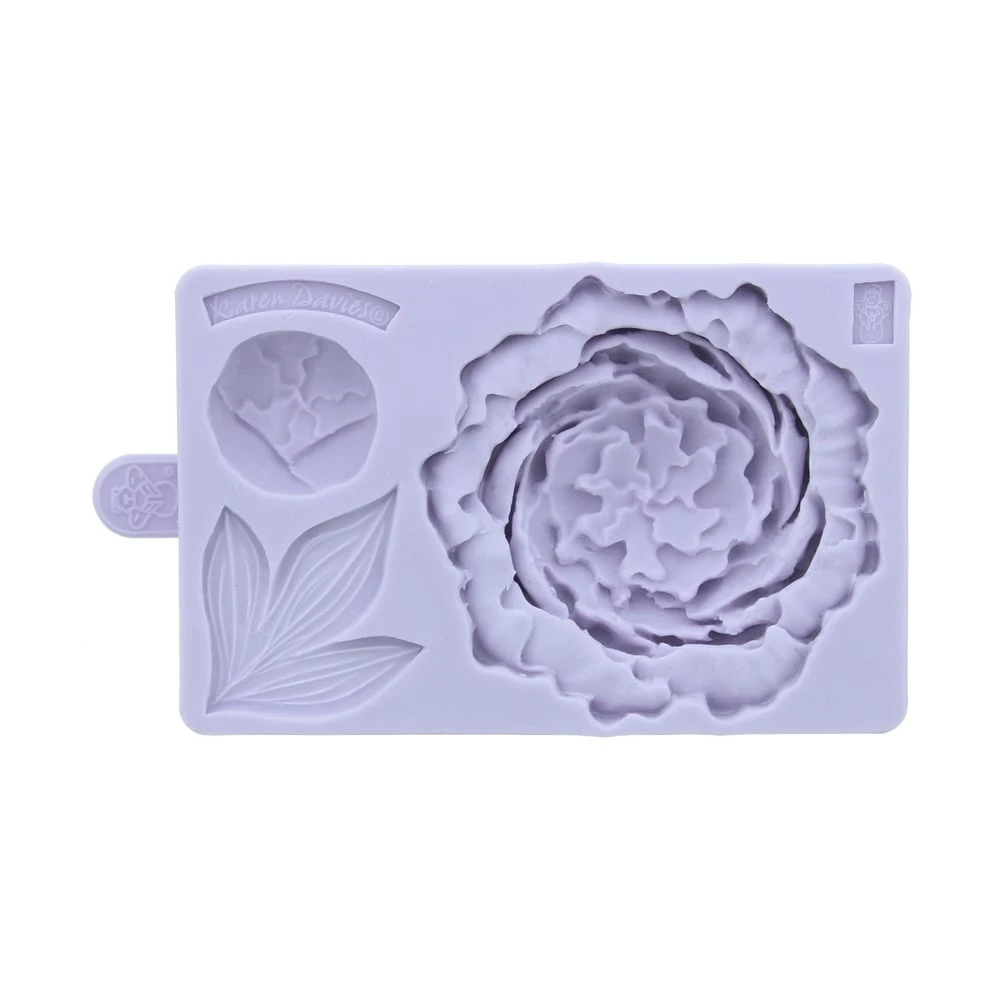 This mould contains three cavities – one for creating the large peony flower head, one for the flower bud, and another for the peony leaf.