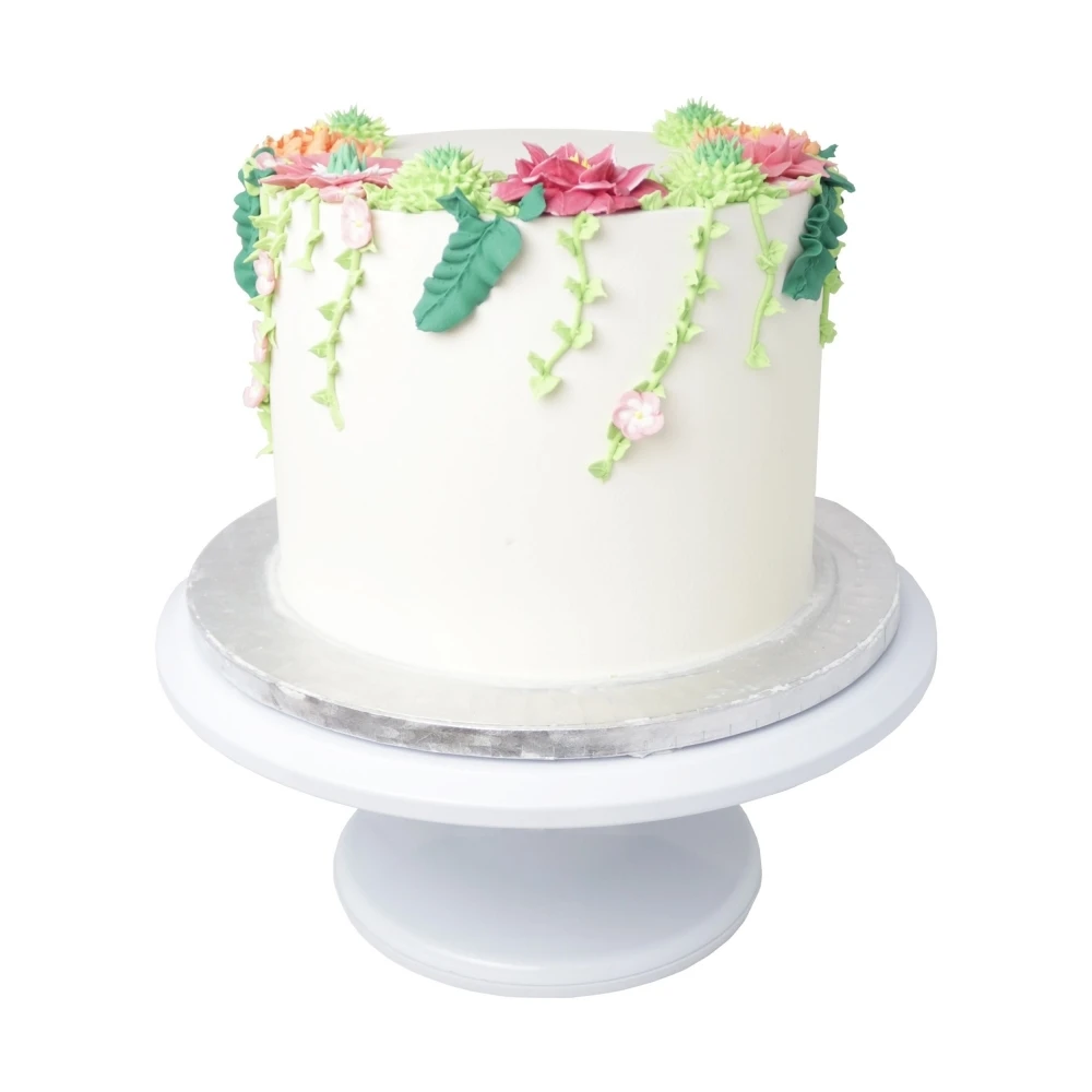 PME’s Professional Turntable makes coating your cakes in ganache, buttercream or royal icing easy for even novice bakers. It is also a great tool for airbrushing, painting, and piping borders.