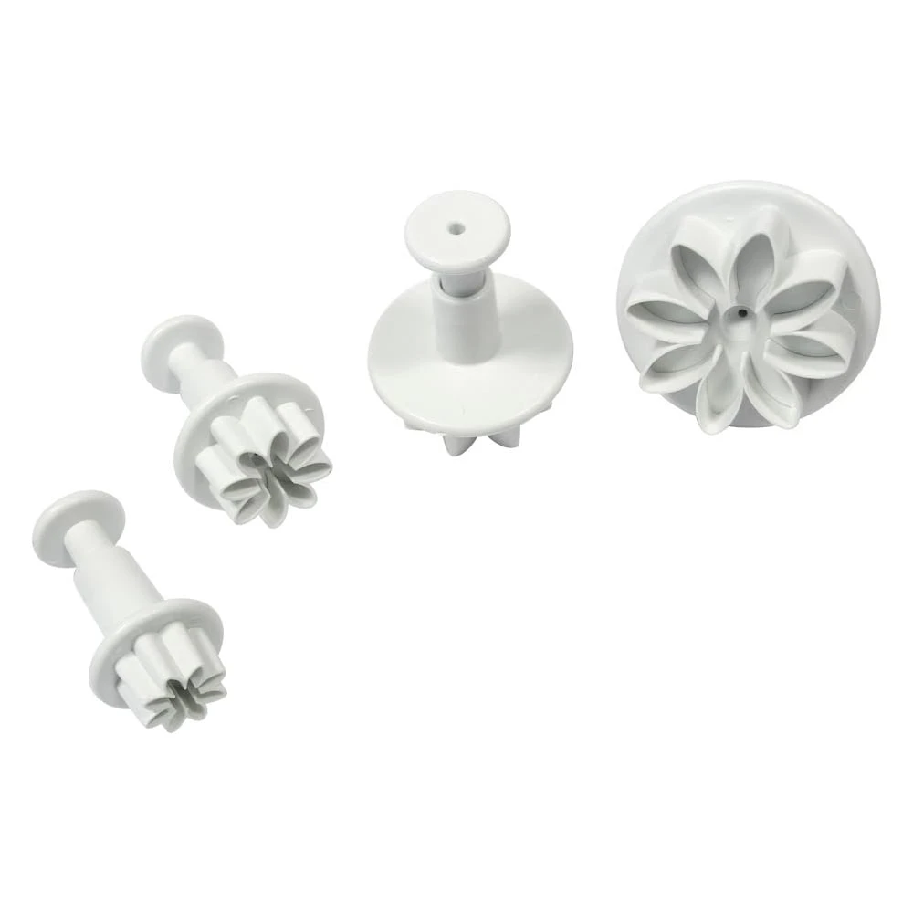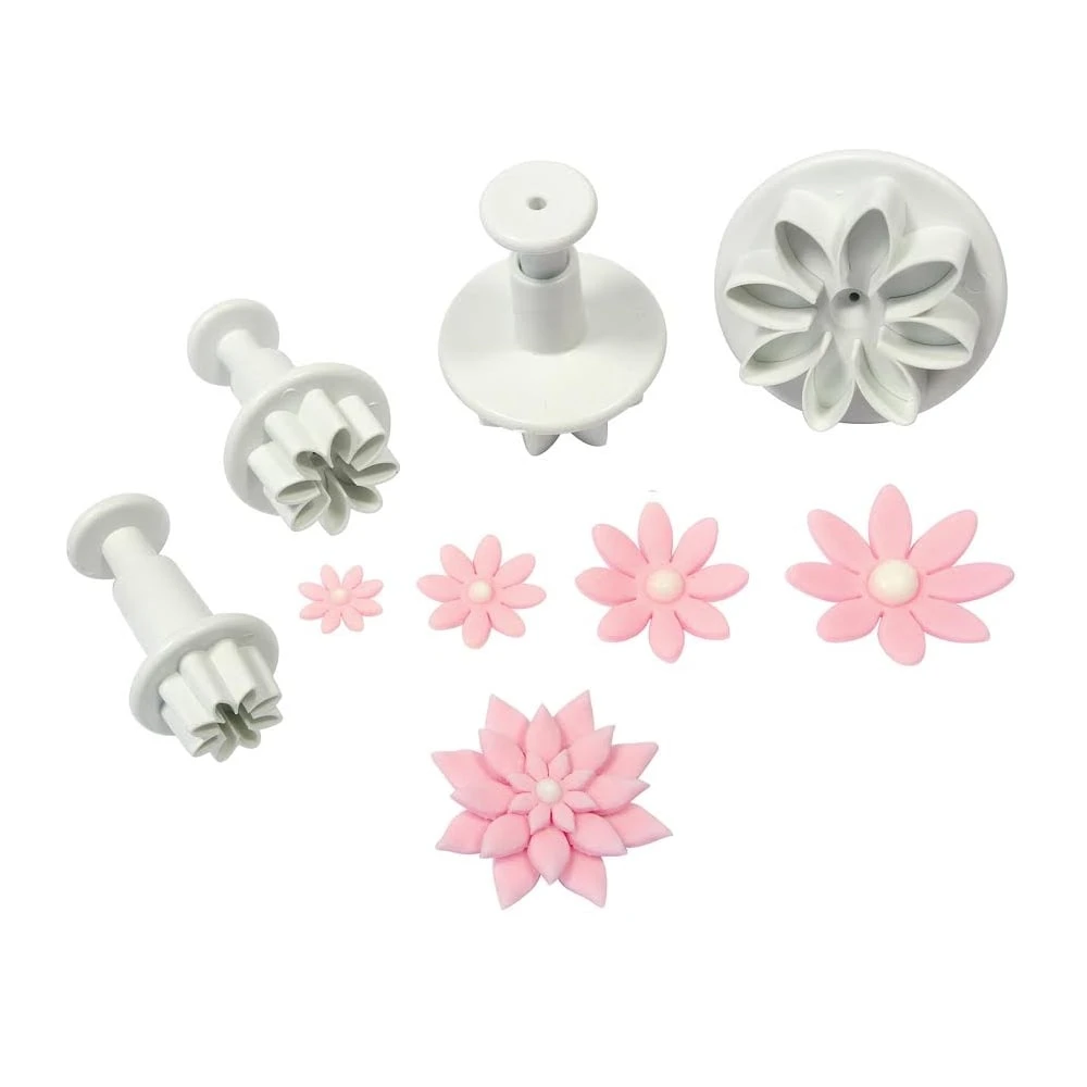 This cutter set consists of 4 plunger cutters which measure approximately 10mm, 19mm and 27mm and 35mm. It is a versatile set which is ideal for making various sugar flowers including daisies, marguerites, chrysanthemums and mini sunflowers.