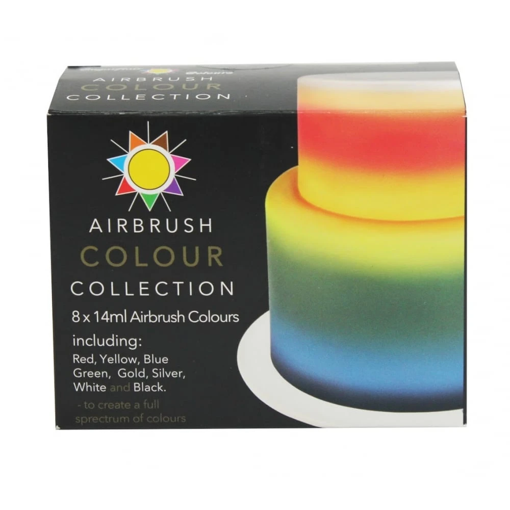 Get all the colours you need to airbrush your cakes with this mixed set of 8 Airbrush Colours from Sugarflair.