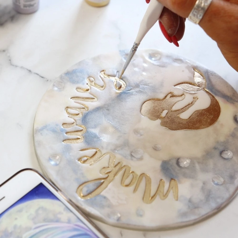 The set can be used with the SWEET STAMP PickUpPad or applied individually, place your desired element over fresh fondant and emboss with your pad, smoother or any flat surface. Once lightly embossed, paint with your favourite paint