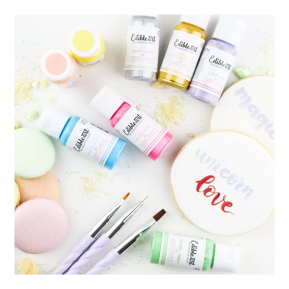 With a unique blend of edible ingredients, these art paints can dry and be rub-free on many surfaces, enabling quick, easy and effective cake decorating.