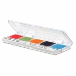 This palette contains 5 colours, each pot containing approximately 5g. Palette includes: Red, Green, Orange, Black and Blue.