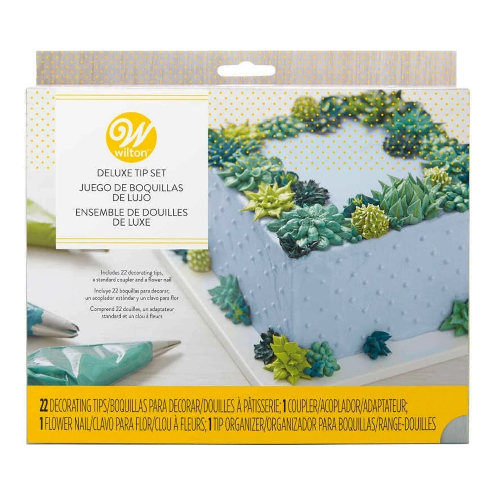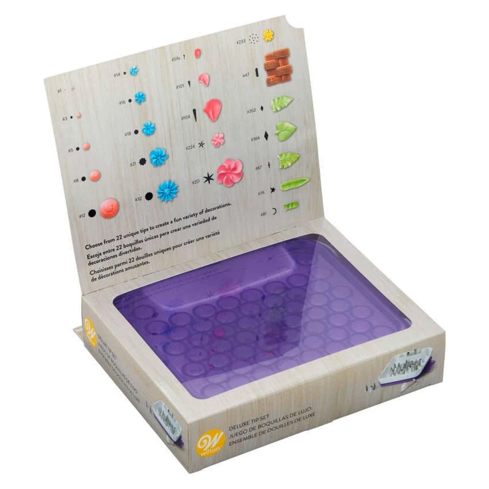 This deluxe tip set from Wilton contains 22 tips and is the ideal set for every cake decorator.