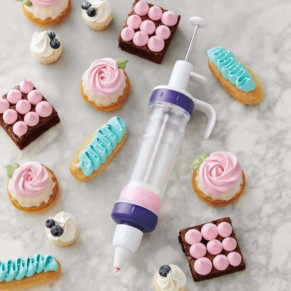Whether you’re filling cupcakes or other sweet treats, decorating desserts from cakes to tarts or even just filling deviled eggs, the Wilton Dessert Decorator Plus is the perfect tool!